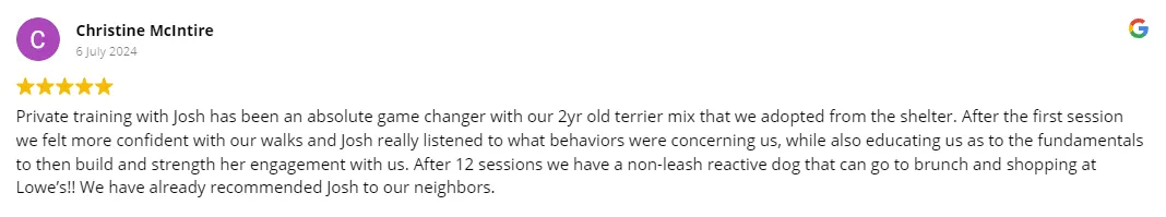 We understand how difficult it can be to navigate owning a dog with aggression. This program is for dogs who are growling, snapping, biting, and or attacking people or other animals.